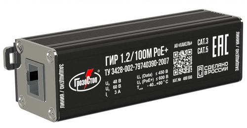 УЗИП оборудования ЛВС категории Cat.3 и Cat.5 с поддержкой передачи питания поверх данных согласно стандарта IEEE802.3af-2003 и 802.3at-2009, ГИР 1.2/100M PoE+ | код 400 556 | Hakel
