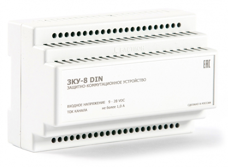 ЗКУ-8 DIN защитно-коммутационное устройство 8 каналов по 1А, вх. напряжен. 9-28В | код 230 | БАСТИОН
