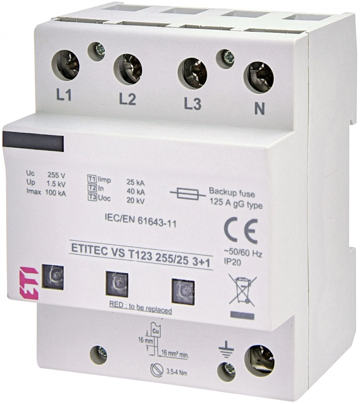 Ограничитель перенапряжения ETITEC VS T123 255/25 (3+1) RC | код 002442936 | ETI