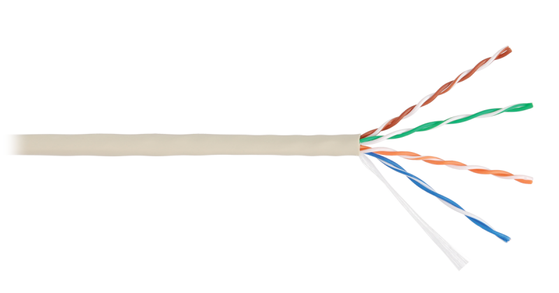 Кабель NIKOLAN U/UTP 4 пары, Кат.5e (Класс D), 100МГц, одножильный, BC (чистая медь), 24AWG (0,511мм), внутренний, PVC нг(А), слоновая кость, 305м | код NKL 9100A-IY | NIKOLAN