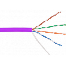 Кабель NIKOLAN U/UTP 4 пары, Кат.5e (Класс D), тест по ISO/IEC, 100МГц, одножильный, BC (чистая медь), 24AWG (0,511мм), внутренний, LSZH нг(А)-HFLTx, фиолетовый, 305м | код NKL 9100C-VL | NIKOLAN