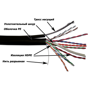 Кабель TWT UTP, 10 пар, Кат.5e, для внешней прокладки с тросом, 305 метров на катушке | код TWT-5EUTP10-OUT-TR | TWT