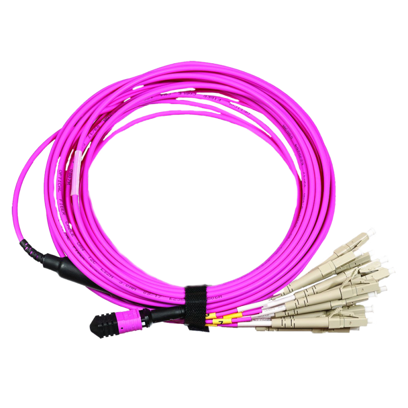 Сборка кабельная MPO-12LC, 12 волокон OM4, низкие потери, LSZH, 5 м, розовая | код LAN-12M-12LC/OM4-5.0 | LANMASTER