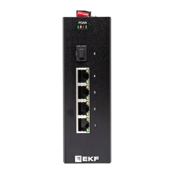Промышленный неуправляемый коммутатор U-1GX/SFP-4GTP, 1 порт 1000Base-X SFP, 4 порта 10/100/1000Base-T(X) RJ45 c PoE, монтаж на динрейку TSX EKF | код TSX-U-1GX/SFP-4GTP | EKF