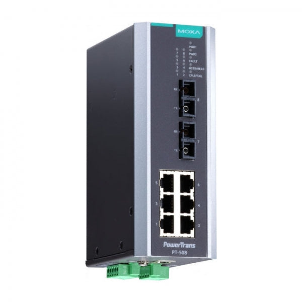 Коммутатор PT-508-SS-SC-24 IEC 61850-3 Ethernet switch, 6 10/100BaseT(X), 2 100BaseFX single-mode, SC, 1 x 24 VDC, -40~85C | код 00-06060680 | MOXA