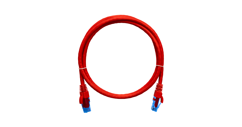 Коммутационный шнур NIKOMAX U/UTP 4 пары, Кат.6 (Класс E), 250МГц, 2хRJ45/8P8C, T568B, заливной, с защитой защелки, многожильный, BC (чистая медь), 24AWG (7х0,205мм), LSZH нг(А)-HFLTx, красный, 2м | код NMC-PC4UE55B-020-C-RD | NIKOMAX Серия