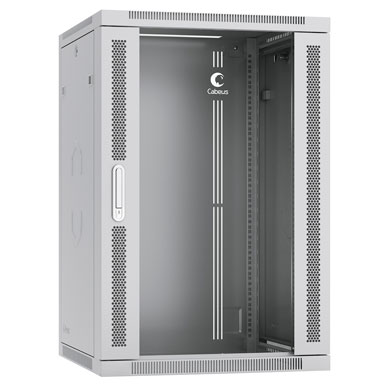 Cabeus SH-05F-18U60/45 Шкаф телекоммуникационный настенный 19 18U 600x450x901mm (ШхГхВ) дверь стекло, цвет серый (RAL 7035) | код 7062c | Cabeus