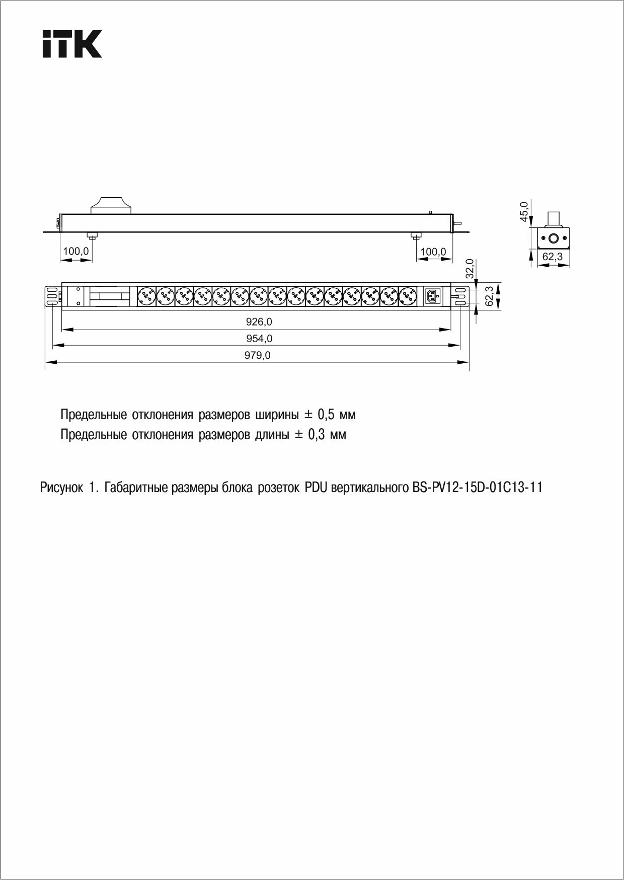 ITK BASE PDU PV1111 22U 1ф 16А 15SCHUKO 1C13 2,6м SCHUKO | код BS-PV12-15D-01C13-11 | ITK by IEK