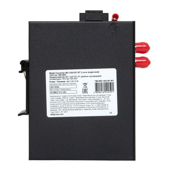 Медиаконвертер 10/100/1000Base-TX в 1000Base-X, разъем ST, двойное одномодовое оптоволокно, 1310нм TSX EKF | код TSX-MC-1GX1GT-ST | EKF