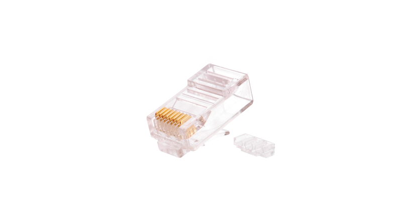 Коннектор NIKOMAX RJ45/8P8C под витую пару, Кат.6 (Класс E), 250МГц, покрытие 50мкд, универсальные ножи, неэкранированный, со вставкой, круглый ввод, уп-ка 100шт. | код NMC-RJ88RZ50UE3-100 | NIKOMAX