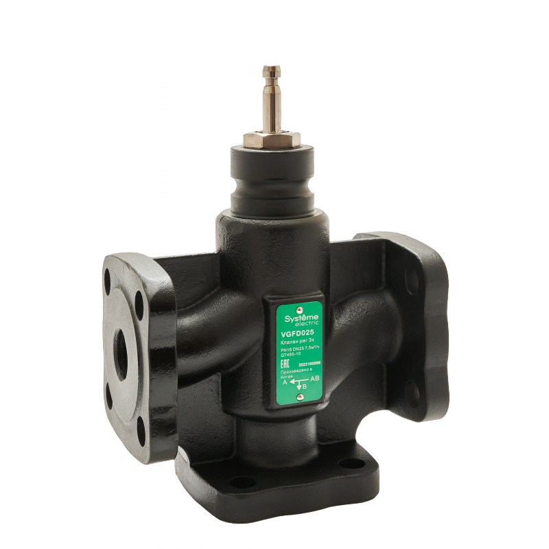 Клапан регулирующий 3-ход разд фланц PN16 DN25 7,5м?/ч -20…+130°С | код VGFD025 | Systeme Electric