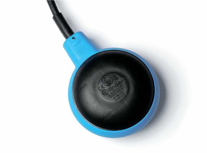 Поплавковый выключатель - 2 водонепроницаемые камеры, для управления насосами технического водопровода, кабель ПВХ 15м, контакты 1СО 20А, степень защиты IP68 | код 72A100001500 | FINDER