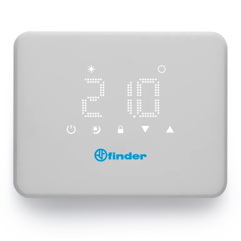 Комнатный термостат Bliss T, сенсорный экран, питание 3В DС, 1СО 5А, монтаж на стену | код 1T9190030000PAS | FINDER