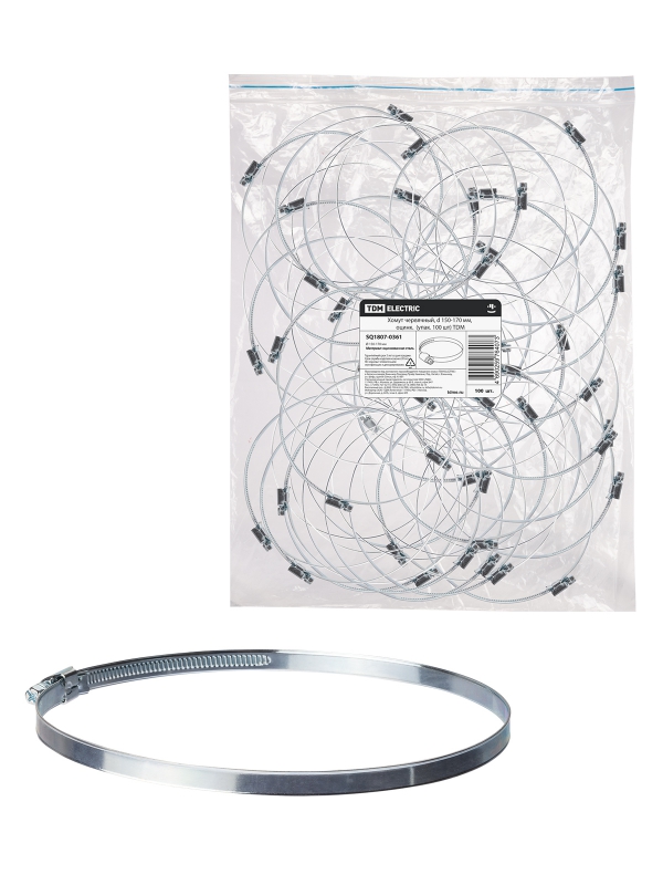 Хомут червячный, d 150-170 мм, оцинк (упак. 100 шт) TDM | код SQ1807-0361 | TDM
