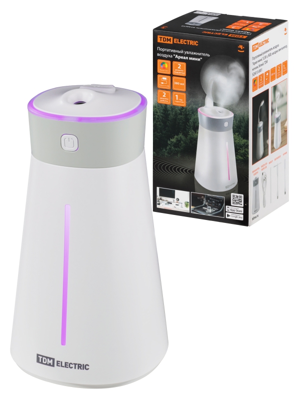 Портативный увлажнитель воздуха Ареал мини, 0,38 л, RGB, насадки: вентилятор, ночник, белый, TDM | код SQ4013-0001 | TDM