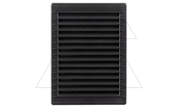 Решетка вентиляционная c косыми ламелями, с сеткой, прямоугольная, 230х172мм, с выводом 210x140мм, пластик, графит | код 02-343 | airRoxy
