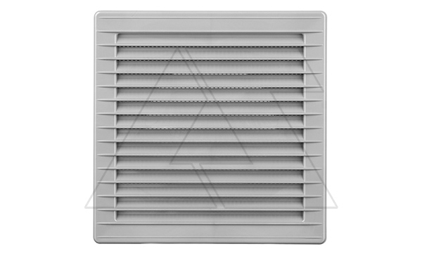 Решетка вентиляционная с косыми ламелями, с сеткой, квадратная, 172х172мм, с выводом 140x140мм, пластик, серый | код 02-338 | airRoxy