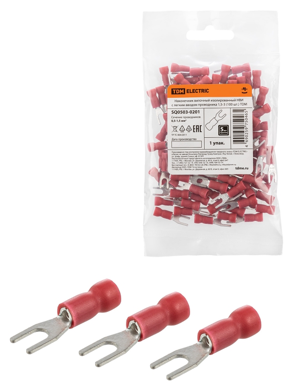 Наконечник вилочный изолированный НВИ с легким вводом проводника 1,5-3 (100 шт.) TDM | код SQ0503-0201 | TDM