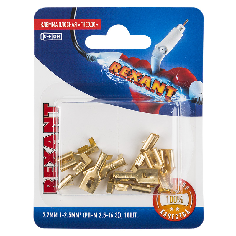 Клемма плоская гнездо 7.5 мм 1-2.5 мм кв (РП-м 2.5-(6.3)) в упак. 10 шт. REXANT | код 06-0401-A | REXANT