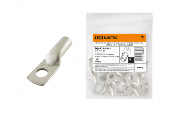 Наконечник медный луженый ТМЛ 50-10-12 ГОСТ 7386-80 TDM | код SQ0533-0041 | TDM