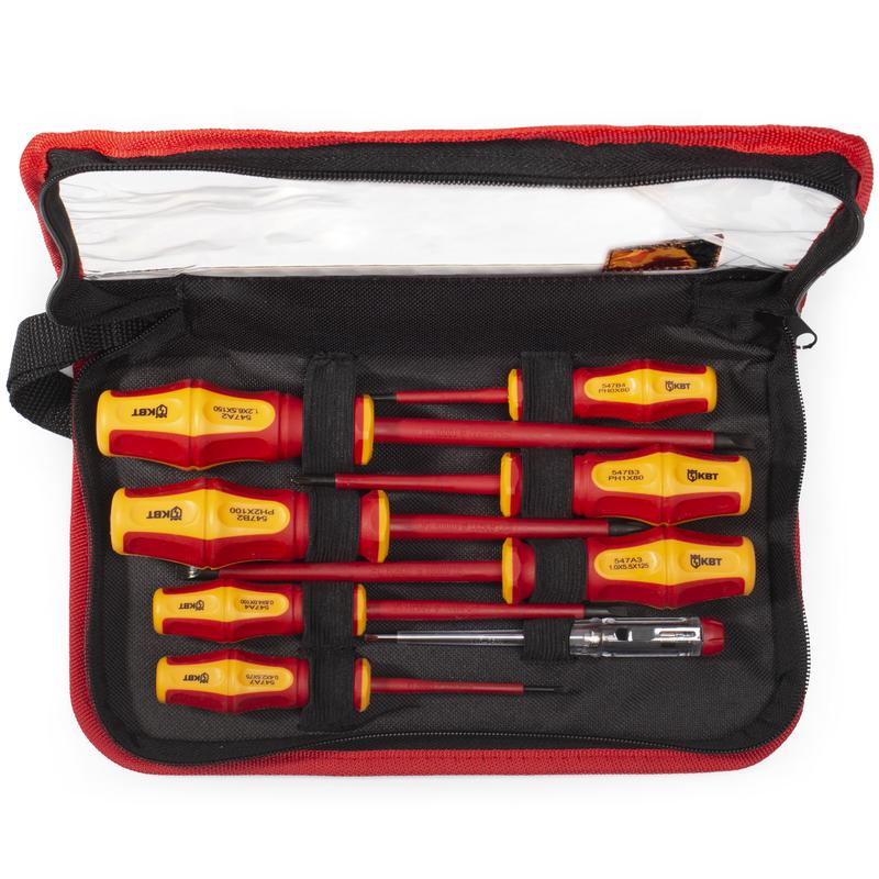 Набор диэлектрических отверток VDE из стали S2, с профилями шлиц и крест, 8 шт. Профи НИО-08-S (КВТ) | код 87130 | КВТ