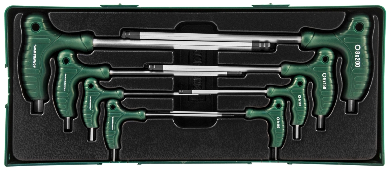 H10MB08SP Комплект угловых шестигранников двусторонних с шаром 2-10мм , 8 предметов (ложементы) | код H10MB08SP | JONNESWAY