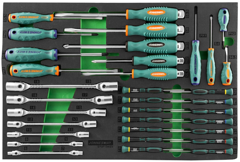 D737134SV Набор стержневых отверток и ключей гаечных карданных в EVA ложементе 560х400 мм, 34 предмета | код D737134SV | JONNESWAY