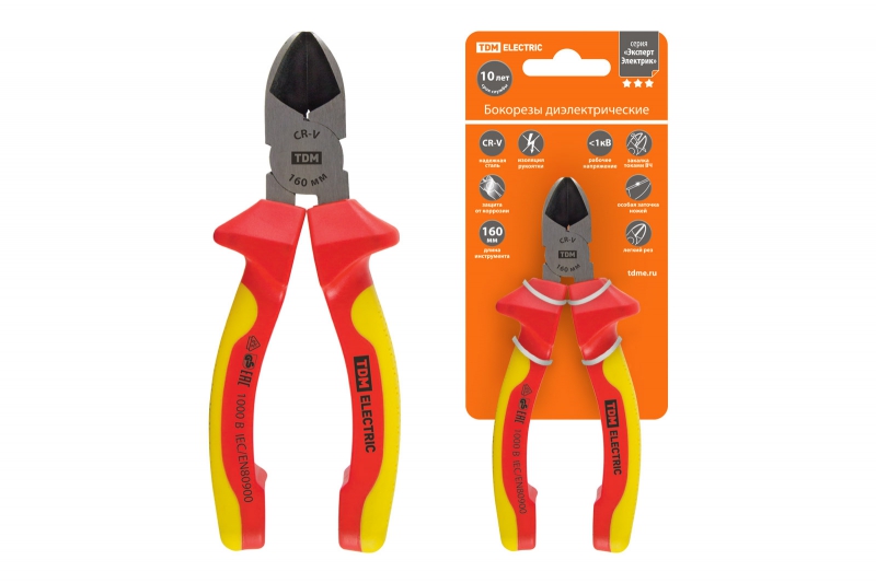 Бокорезы диэлектрические, 160 мм, 1000 В, CR-V, «ЭкспертЭлектрик» TDM | код SQ1010-0101 | TDM