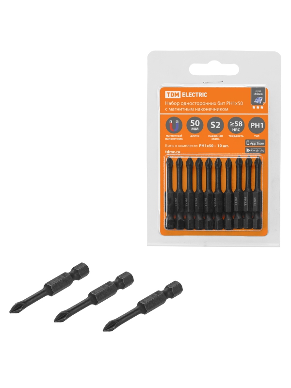 Набор бит PH1x50, односторонних, сталь S2, Е 1/4, намагниченные, торсионные, 10 шт., «Алмаз» TDM | код SQ1019-0424 | TDM