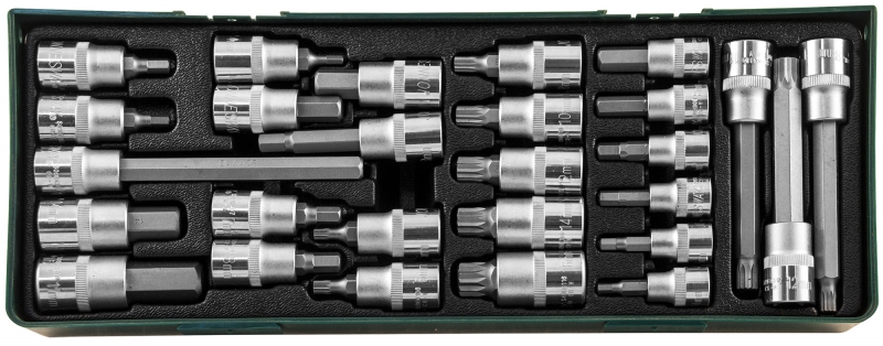 S06H427SP Набор насадок торцевых 3/8 и 1/2DR с вставками-битами в ложементе, 27 предметов | код S06H427SP | JONNESWAY