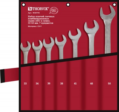 W3S7TB Набор ключей гаечных комбинированных серии ARC в сумке, 33-50 мм, 7 предметов | код W3S7TB | Thorvik