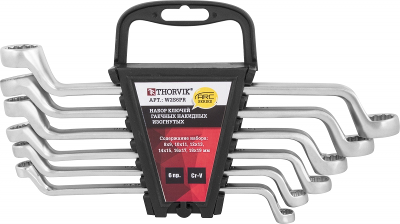 W2S6PR Набор ключей гаечных накидных изогнутых серии ARC на держателе, 8-19 мм, 6 предметов | код W2S6PR | Thorvik