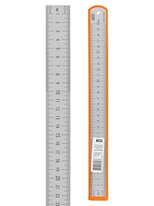 Линейка измерительная металлическая 30 см, нержавеющая сталь, двухсторонняя шкала, Рубин TDM | код SQ1018-0503 | TDM