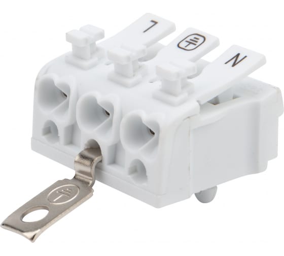 923-3PEF Клемма пружинная с кнопкой и заземл.пластиной (металл) КСП 3-полюсная, сеч.2.5мм2, бел., шт | код 923-3PEF | SILAT