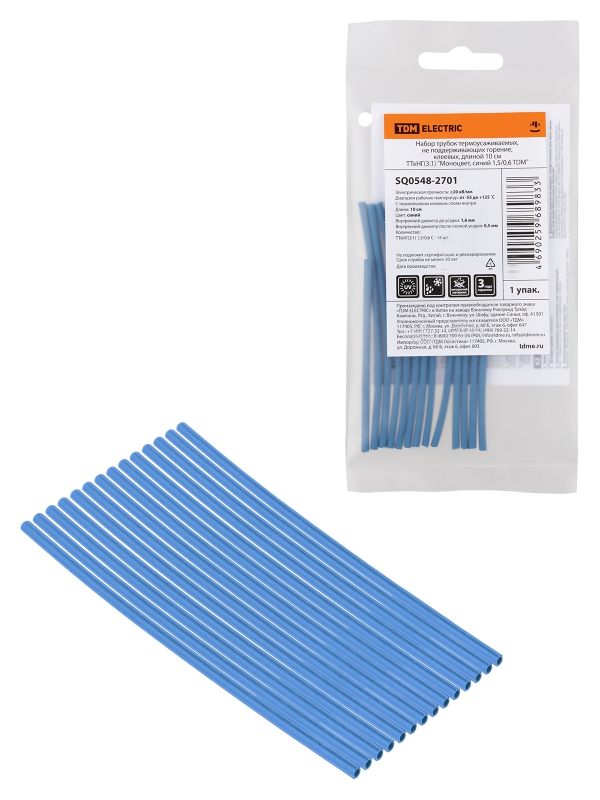 Набор трубок термоусаживаемых, клеевых Моноцвет, синий 1,5/0,6 TDM | код SQ0548-2701 | TDM
