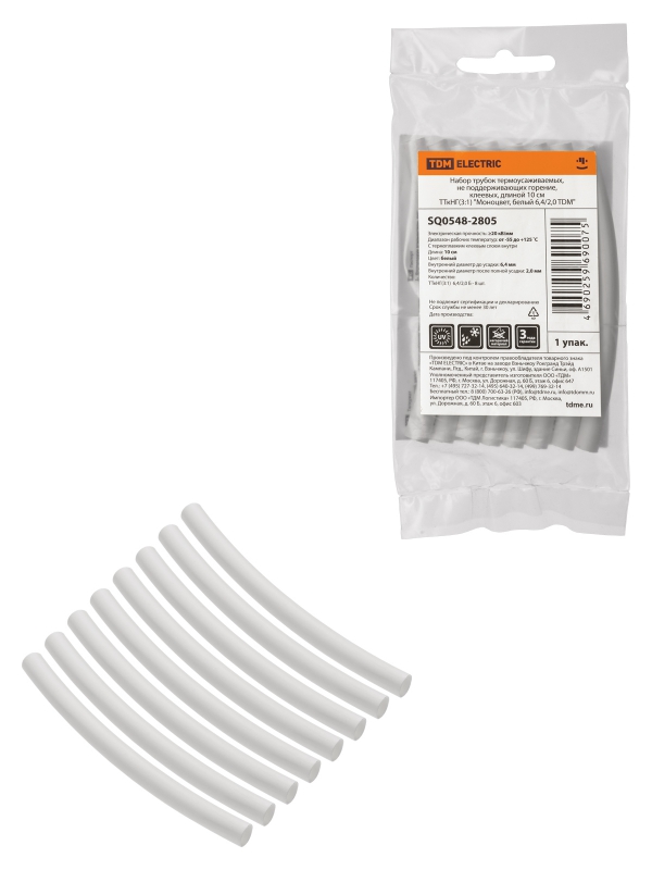 Набор трубок термоусаживаемых, клеевых Моноцвет, белый 6,4/2,0 TDM | код SQ0548-2805 | TDM