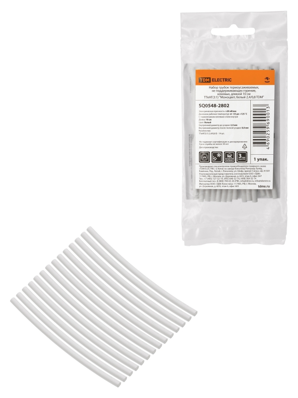 Набор трубок термоусаживаемых, клеевых Моноцвет, белый 2,4/0,8 TDM | код SQ0548-2802 | TDM