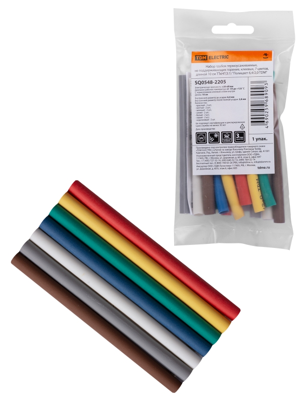 Набор трубок термоусаживаемых, клеевых ТТкНГ(3:1) Полицвет 6,4/2,0 TDM | код SQ0548-2205 | TDM