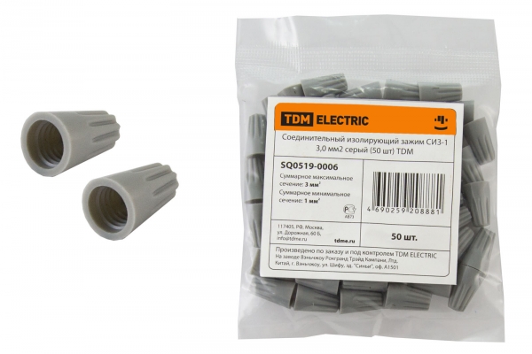 Соединительный изолирующий зажим СИЗ-1 3,0 мм2 серый (50 шт) TDM | код SQ0519-0006 | TDM