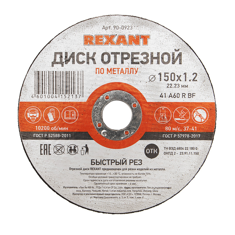 Диск отрезной по металлу (150х1.2х22.23 мм) REXANT | код 90-0923 | REXANT