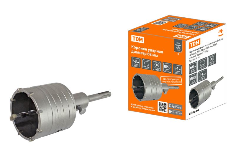 Коронка ударная по кирпичу и бетону, победит, SDS-Plus, d 68 мм, М22, в сборе, Гранит TDM | код SQ1031-0101 | TDM