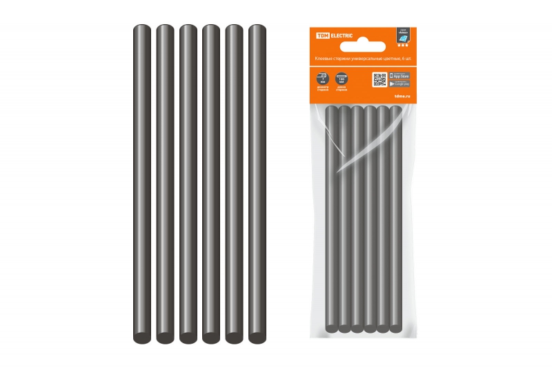 Клеевые стержни универсальные черные, 11 мм x 100 мм, 6 шт, Алмаз TDM | код SQ1024-0512 | TDM