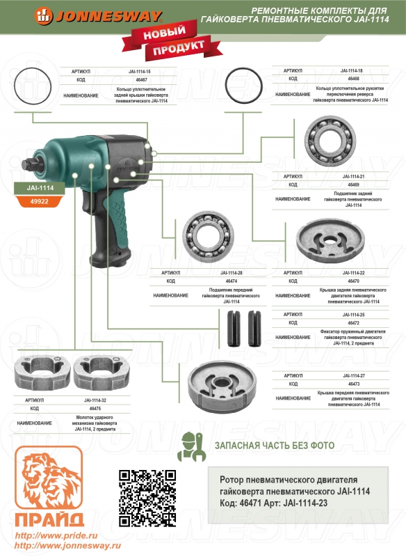 JAI-1114-23 Ротор пневматического двигателя гайковерта пневматического JAI-1114 | код JAI-1114-23 | JONNESWAY