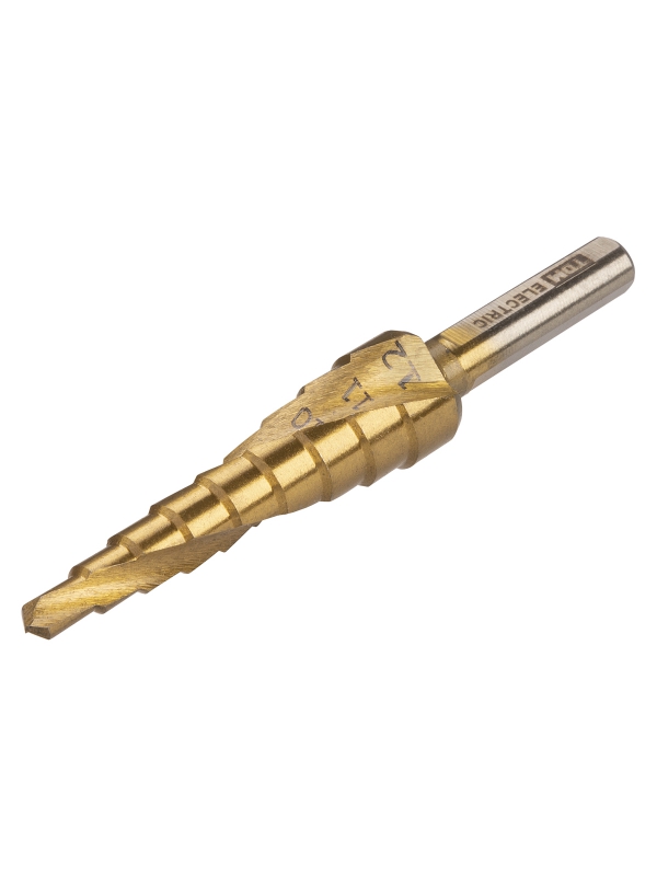 Сверло по металлу ступенчатое, 4-12 мм, 9 ступеней, нитрид., HSS, цилиндр. хв., Рубин TDM | код SQ1090-0711 | TDM