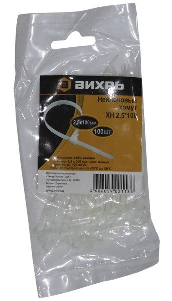 Хомут нейлоновый 2,5*100 Б (100шт) ВИХРЬ | код 73/9/1/10 | ВИХРЬ