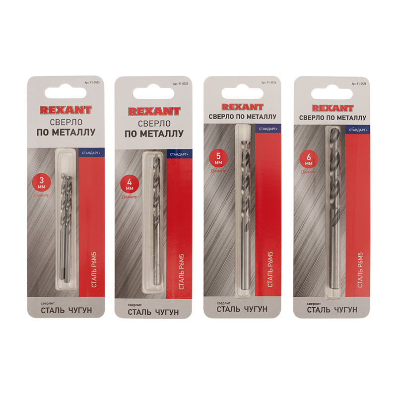 Набор сверл по металлу Слесарь Mini (P6M5) диаметр 3-4-5-6 мм (4 шт.) REXANT | код 91-0593 | REXANT
