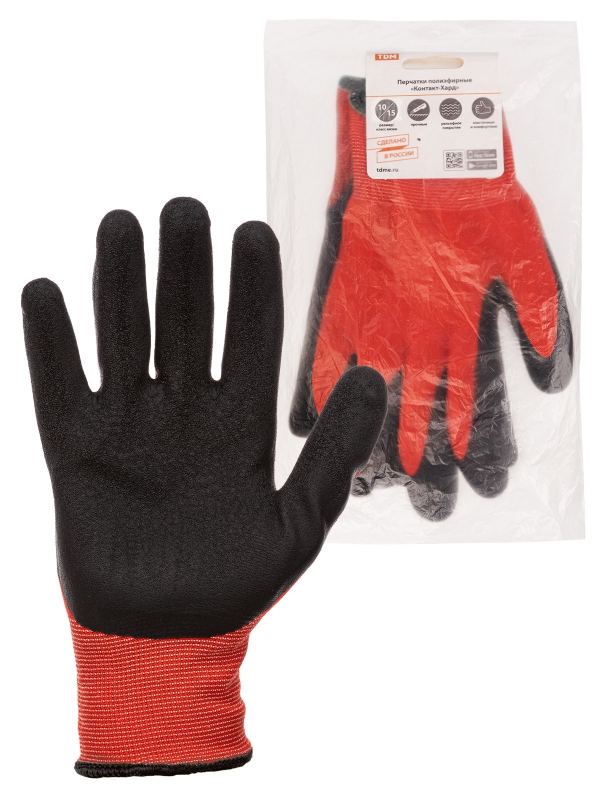 Перчатки полиэфирные Контакт-Хард, рельефное латексное покрытие, 10, 15 кл., 63-65 г, 1 пара, TDM | код SQ1016-0309 | TDM