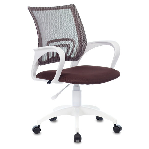 Кресло BRABIX Fly MG-396W, с подлокотниками, пластик белый, сетка, коричневое | код 532398 | BRABIX