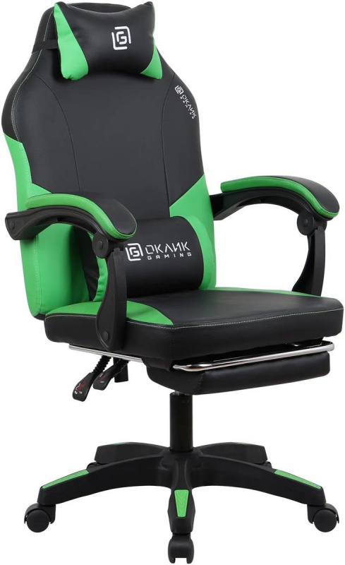 Кресло игровое Оклик Cooldown черный/зеленый сиденье черный/зеленый искусст.кожа/сетка с подголов. крестов. пластик подст.для ног пластик черный | код 2006751 | Oklick