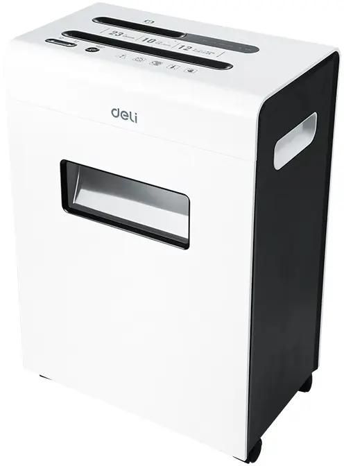 Шредер Deli E9903-EU белый/черный (секр.P-4) фрагменты 12лист. 23лтр. скрепки скобы пл.карты CD | код 1022908 | DELI